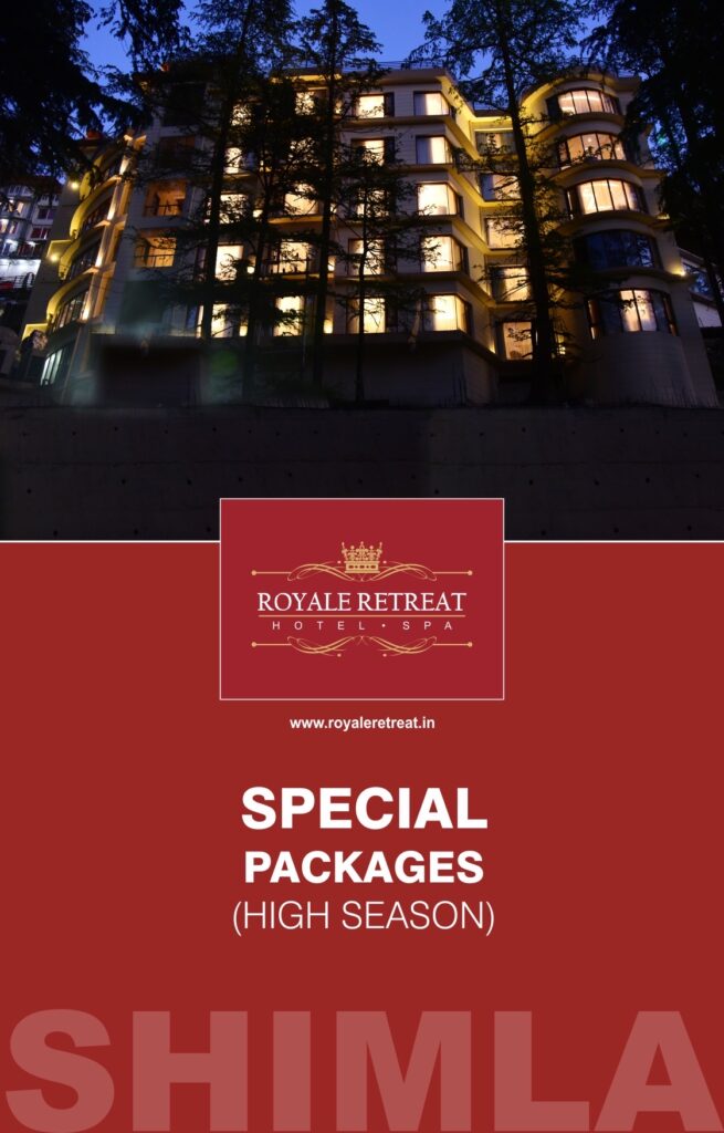Royale Retreat is one of the best luxury hotels in Shimla located in the heart of Shimla, at a walking distance from Shimla’s famous Mall Road. Nestled amidst majestic mountain lines and surrounded by dense forests of deodar and pine trees, the hotel offers picturesque views from all rooms. The interior is fully air-conditioned and is superbly designed with a woodsy feel.
